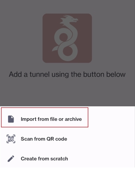 A list of options appear at the bottom of the app. Tap the Import from file or archive option.