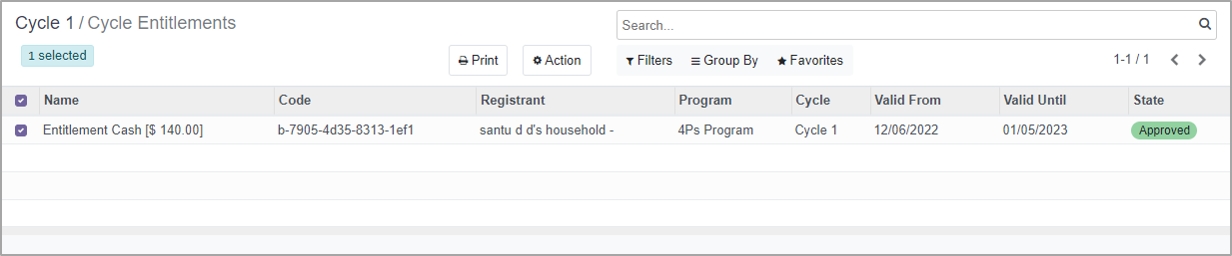 Entitlement is the quantity of benefit that a beneficiary is entitled to receive. This is the money that a beneficiary will receive via either direct bank transfer, mobile wallet, cash at the counter, vouchers or other disbursement mechanisms. Entitlement is defined for each cycle.