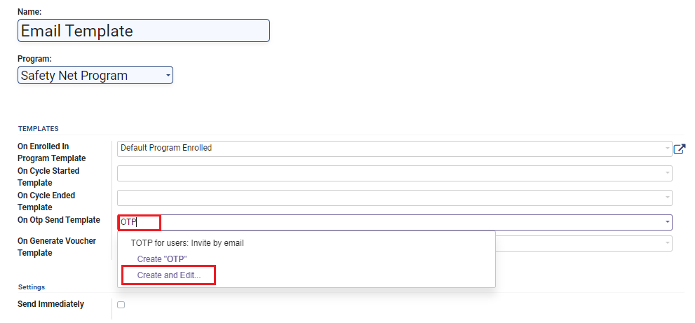 Optionally, enable the checkbox Send Immediately to send the email notification to beneficiaries immediately after the program enrollment, at the start of the cycle, and at the end of the cycle.
