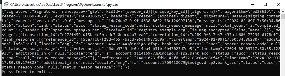 After the administrator runs the script, the response is triggered in a cmd prompt which shows that the National IDs are linked to the FA of the beneficiaries.