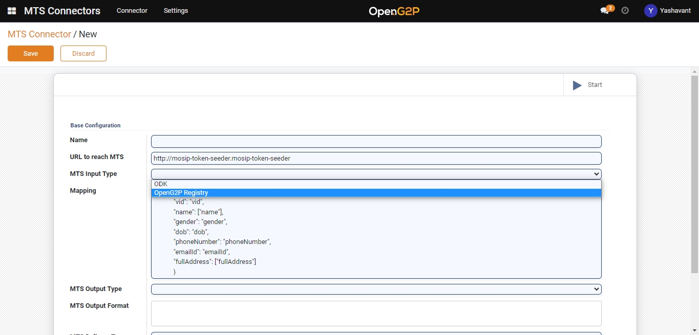 Set MTS Input Type as OpenG2P Registry and for other fields configuration please go through Registry MTS Connector.