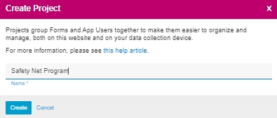 You can find the newly created project Safety Net Program listed in the ODK Central home screen