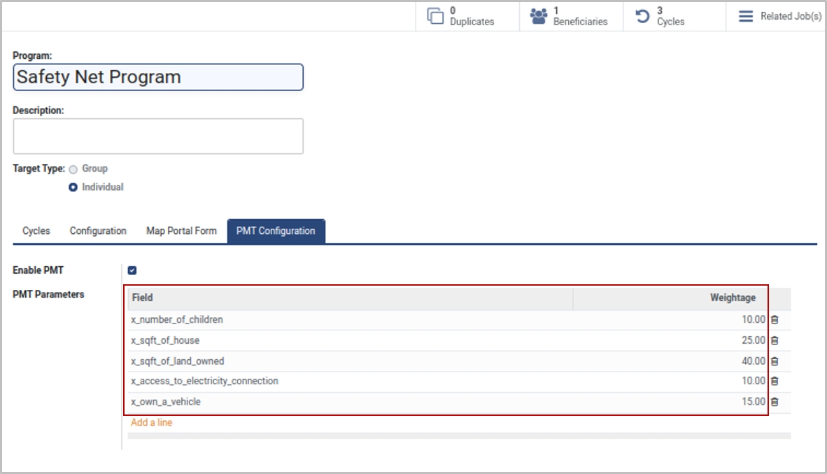 Proxy Means Test plug-in can be conveniently installed in the OpenG2P platform. The observable characteristics are referred to as computed fields in the OpenG2P platform. To learn the steps to configure computed fields, click here.