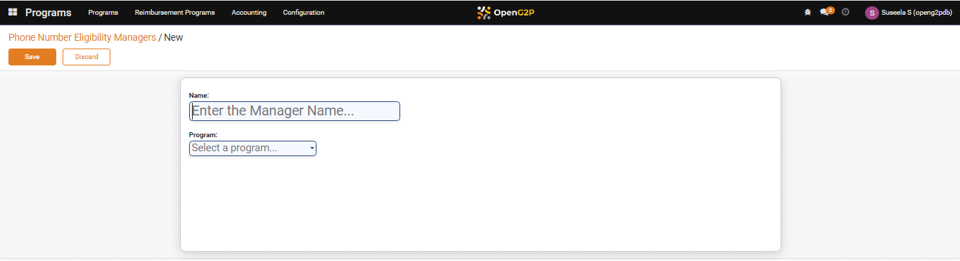 Click the Discard button to discard the changes and go back to Phone Number Eligibility Managers list view page.