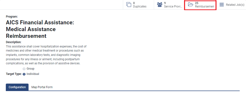 4. Click *Reimbursements* on the program detail view page.