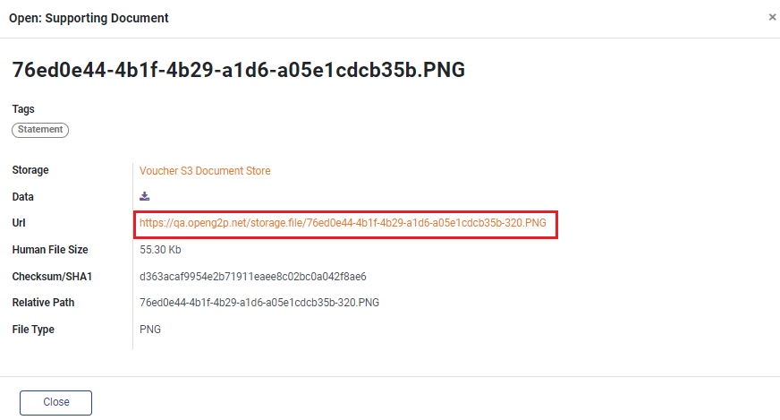 7. A pop-up window appears, click on *Url* to review the provided document.