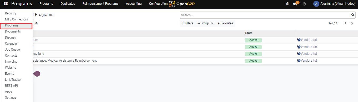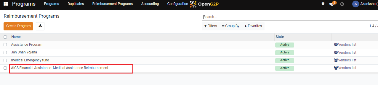 3. Select the desired program for which reimbursement is required.